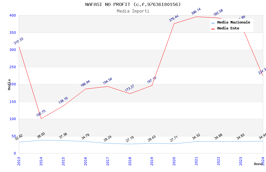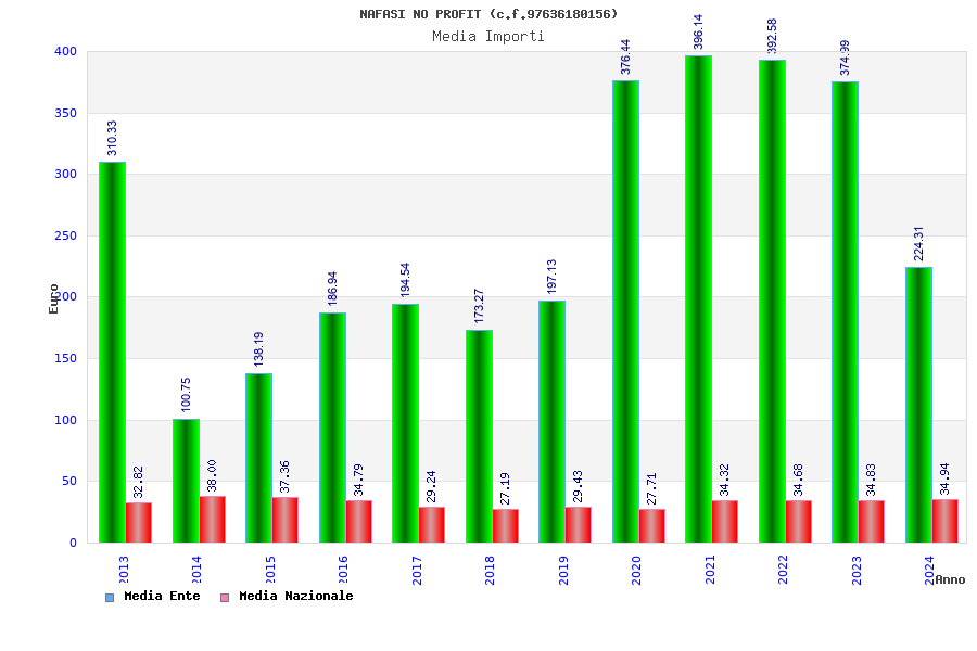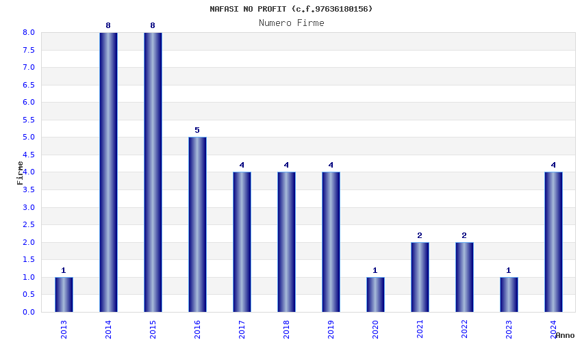 | Anno | Firme | Importi | Media | Naz. | Reg. | Prov. | Comu. |
