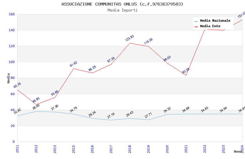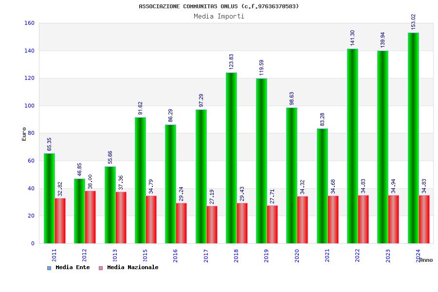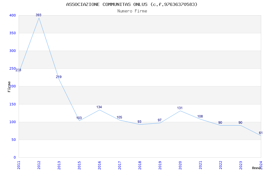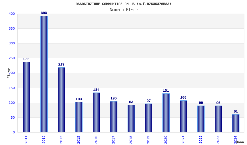 | Anno | Firme | Importi | Media | Naz. | Reg. | Prov. | Comu. |