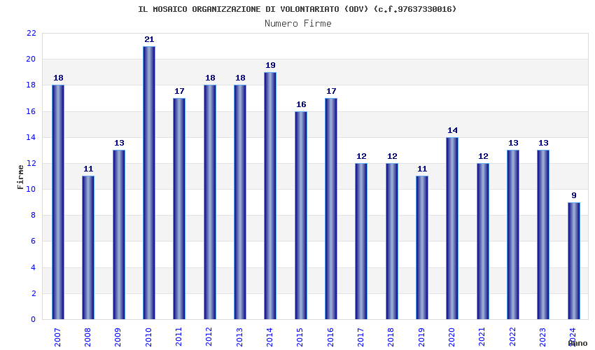 | Anno | Firme | Importi | Media | Naz. | Reg. | Prov. | Comu. |