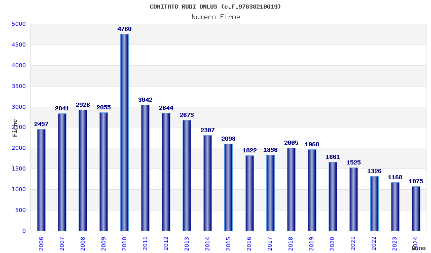 | Anno | Firme | Importi | Media | Naz. | Reg. | Prov. | Comu. |