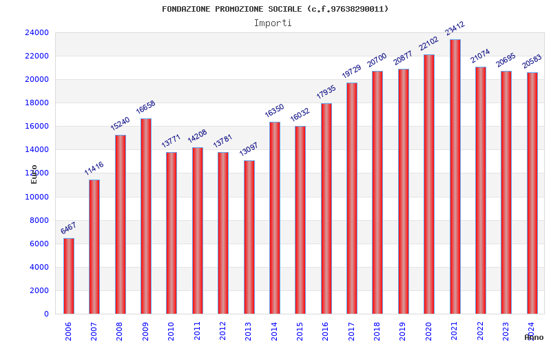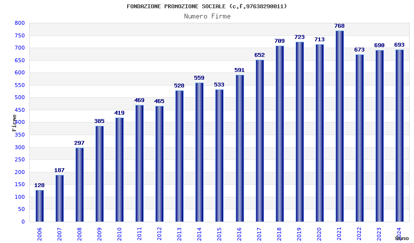 | Anno | Firme | Importi | Media | Naz. | Reg. | Prov. | Comu. |