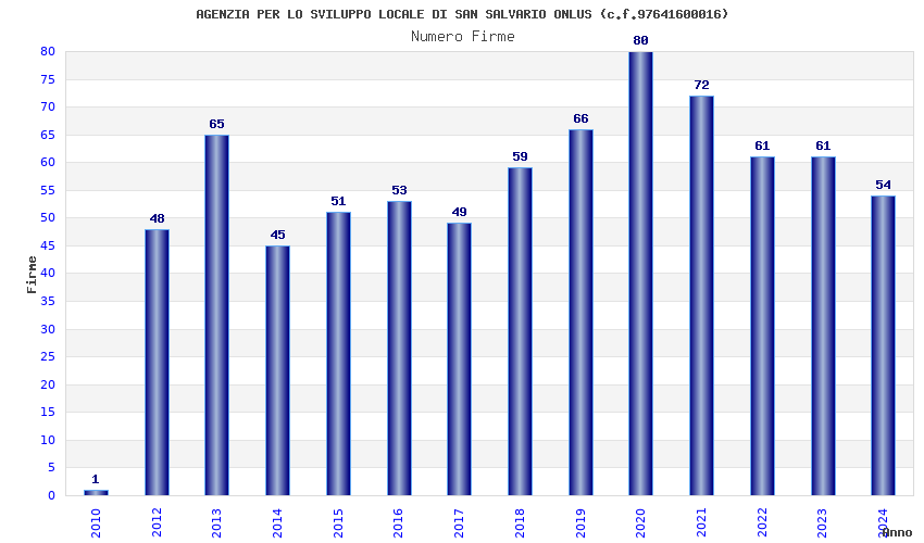 | Anno | Firme | Importi | Media | Naz. | Reg. | Prov. | Comu. |
