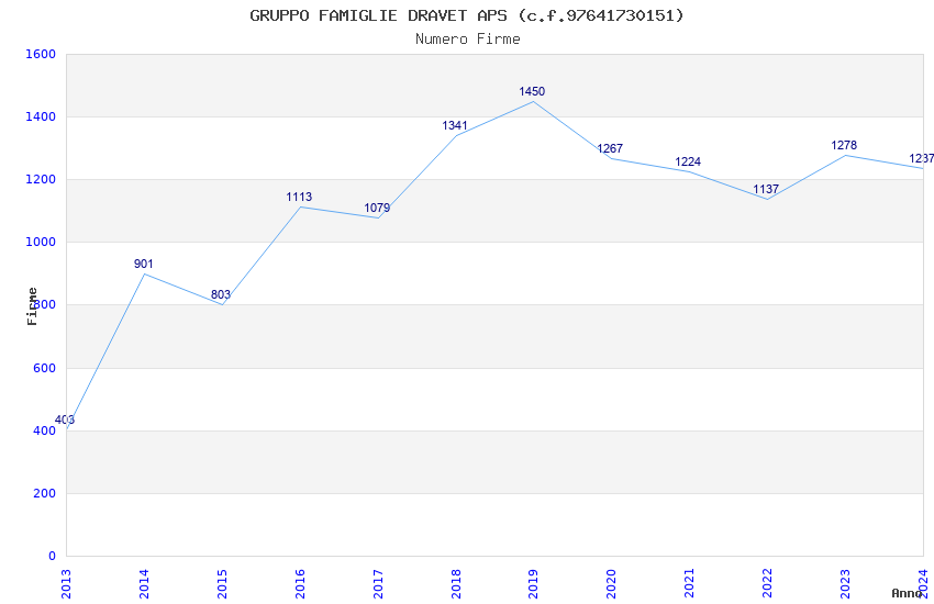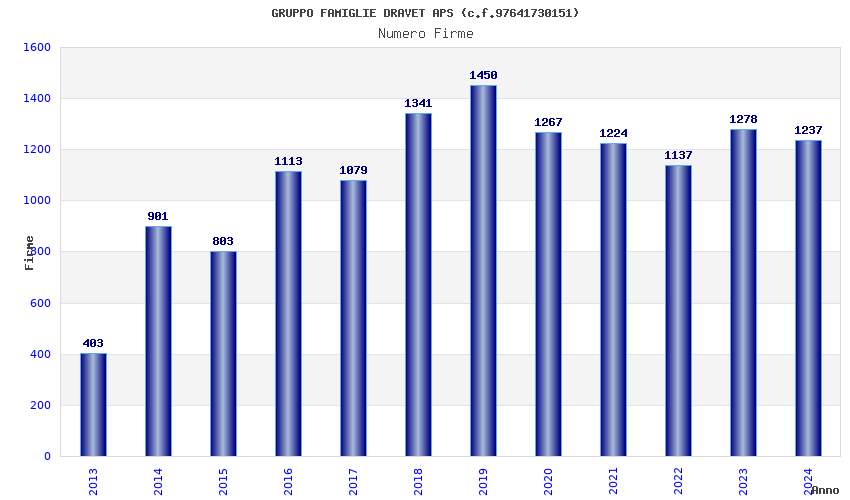 | Anno | Firme | Importi | Media | Naz. | Reg. | Prov. | Comu. |