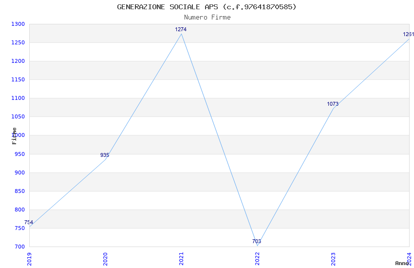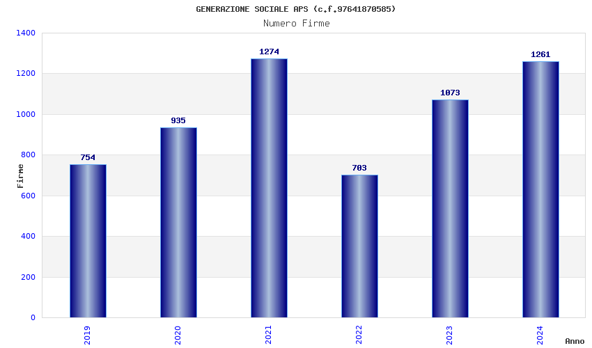 | Anno | Firme | Importi | Media | Naz. | Reg. | Prov. | Comu. |