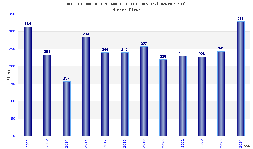 | Anno | Firme | Importi | Media | Naz. | Reg. | Prov. | Comu. |
