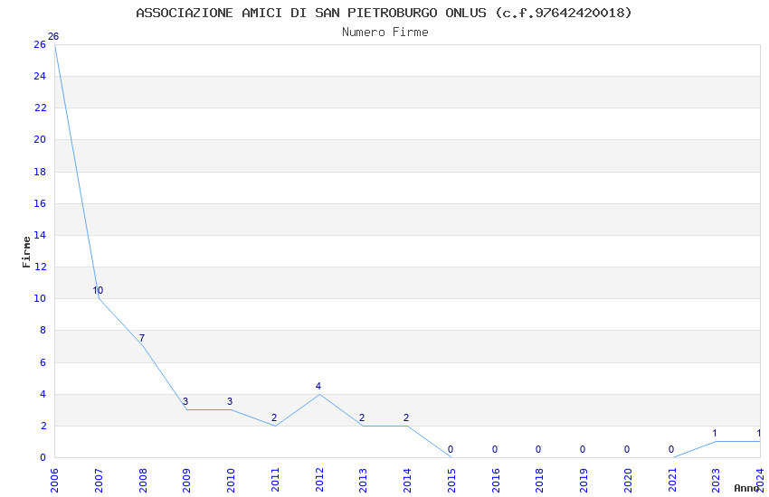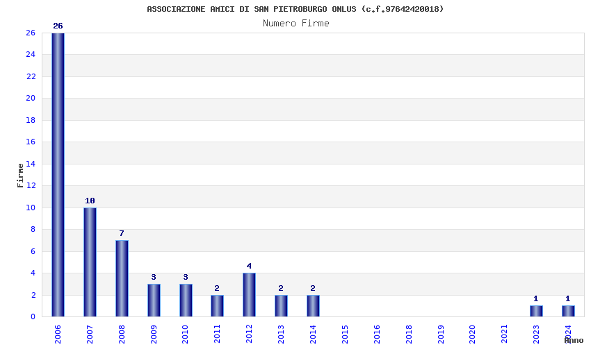 | Anno | Firme | Importi | Media | Naz. | Reg. | Prov. | Comu. |