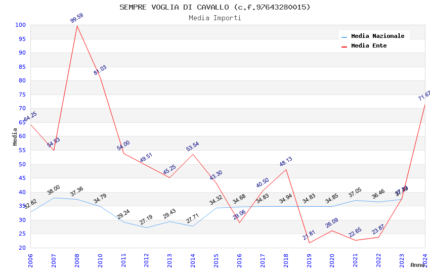 | Anno | Firme | Importi | Media | Naz. | Reg. | Prov. | Comu. |