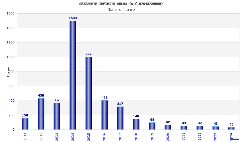 | Anno | Firme | Importi | Media | Naz. | Reg. | Prov. | Comu. |