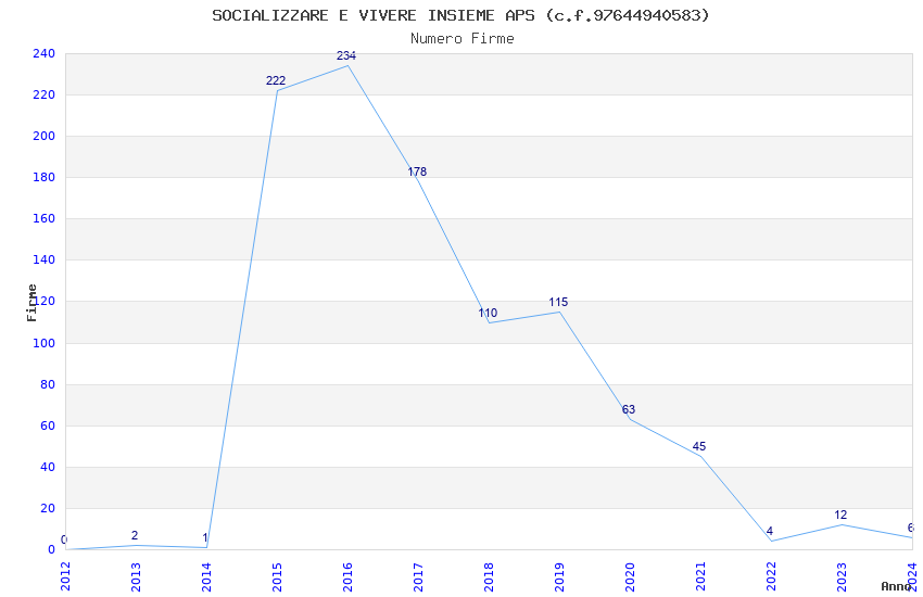 | 2016 | 234 | 5.260,75 | 22,48 | 10.419 | 1.224 | 1.096 | 953 |