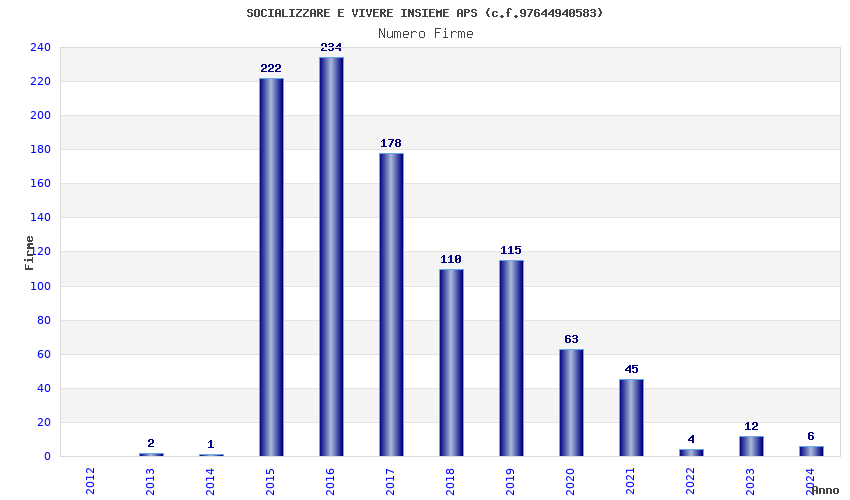 | Anno | Firme | Importi | Media | Naz. | Reg. | Prov. | Comu. |