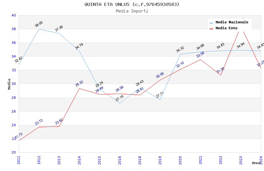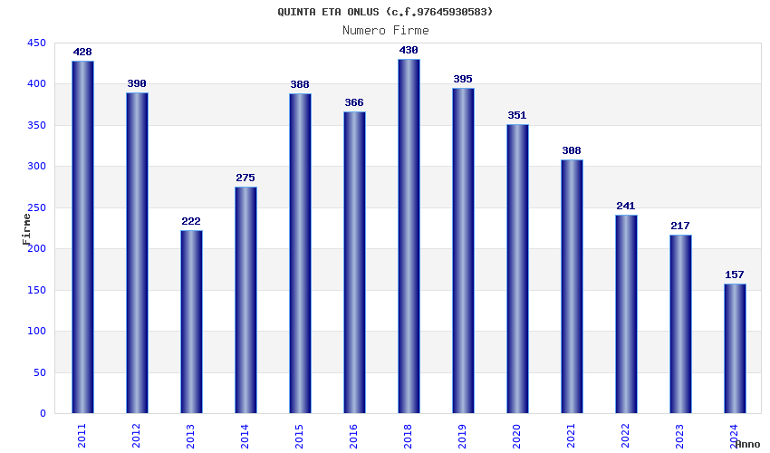 | Anno | Firme | Importi | Media | Naz. | Reg. | Prov. | Comu. |