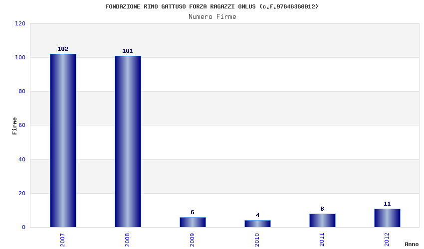 | Anno | Firme | Importi | Media | Naz. | Reg. | Prov. | Comu. |