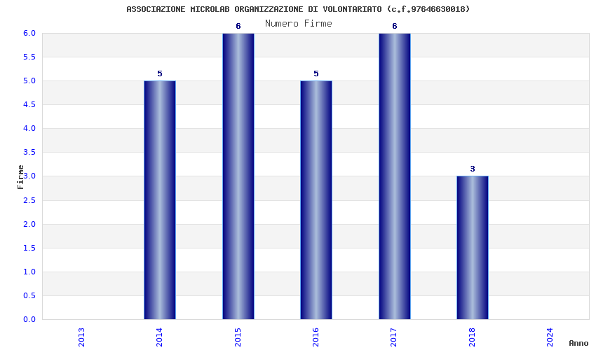 | Anno | Firme | Importi | Media | Naz. | Reg. | Prov. | Comu. |