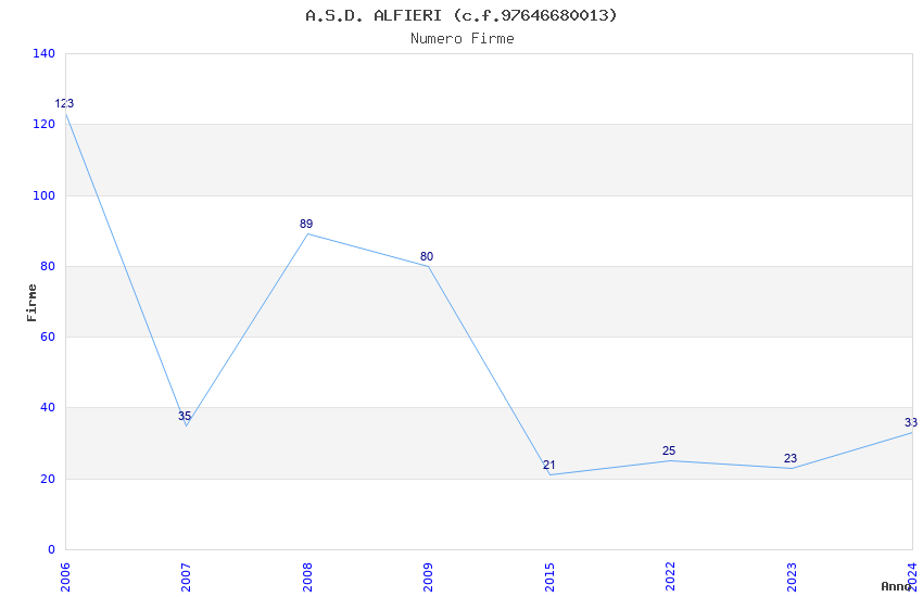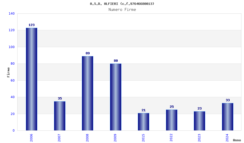 | Anno | Firme | Importi | Media | Naz. | Reg. | Prov. | Comu. |