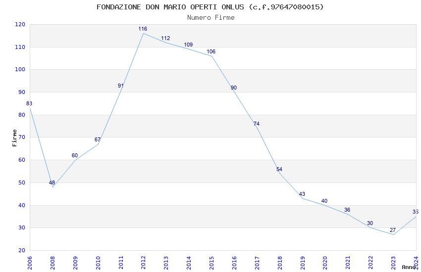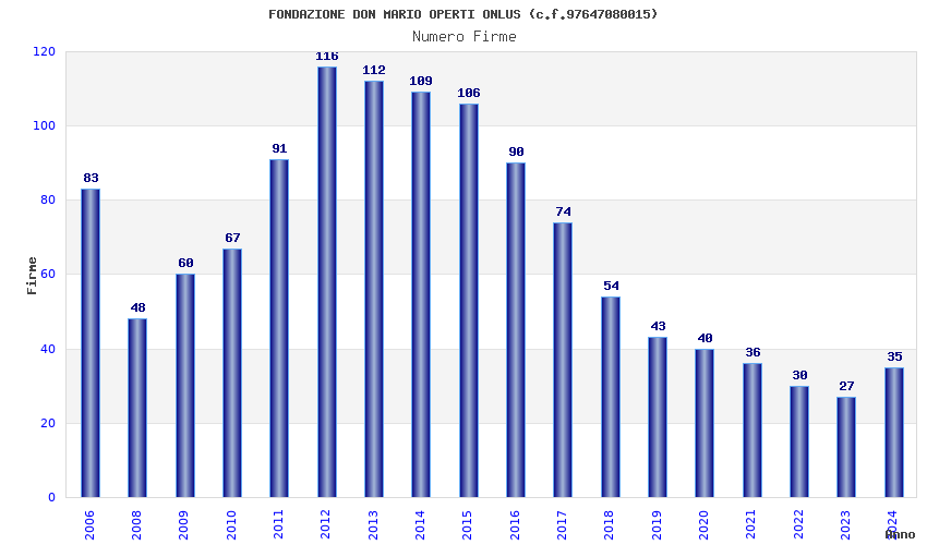 | Anno | Firme | Importi | Media | Naz. | Reg. | Prov. | Comu. |