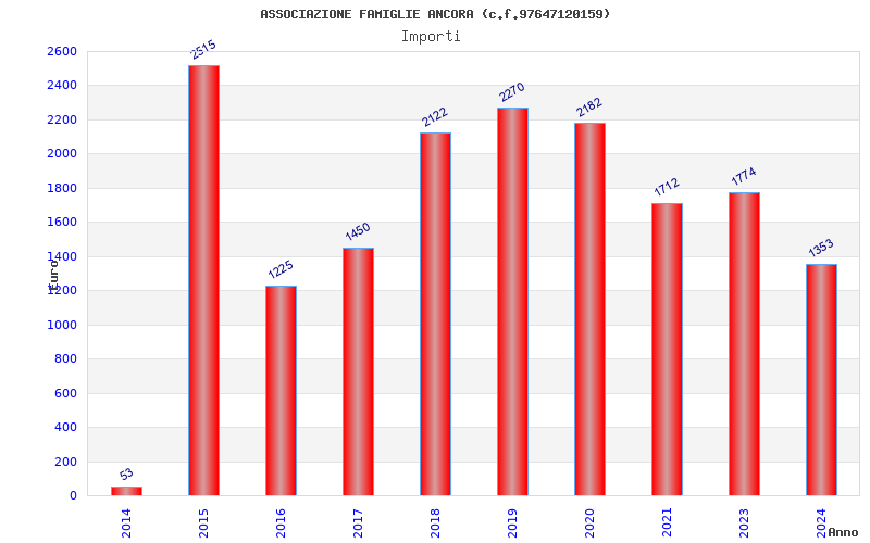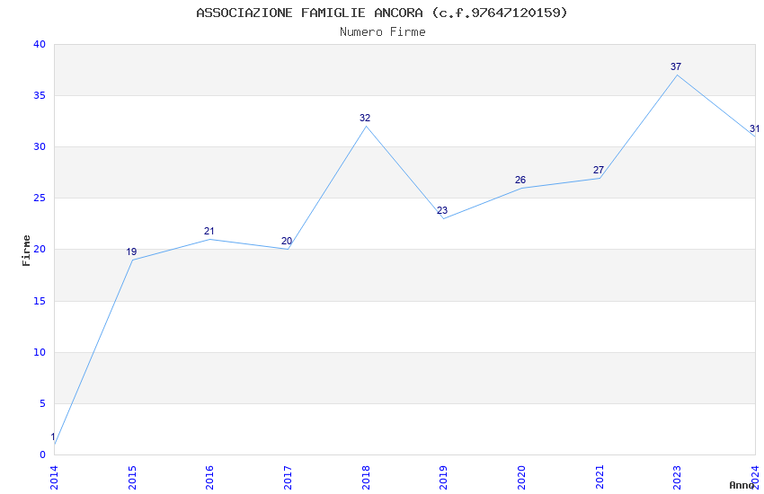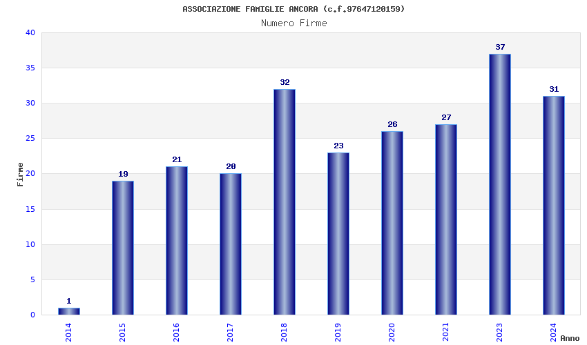 | Anno | Firme | Importi | Media | Naz. | Reg. | Prov. | Comu. |