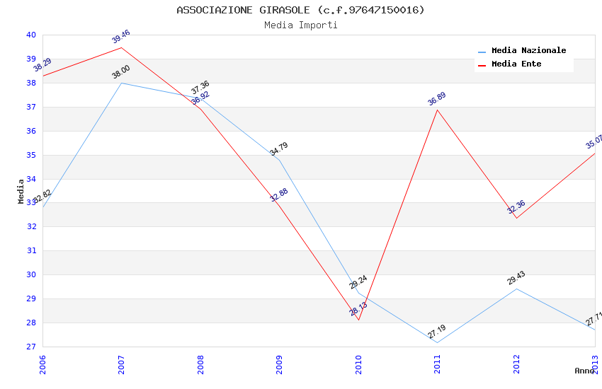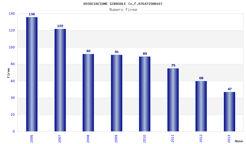 | Anno | Firme | Importi | Media | Naz. | Reg. | Prov. | Comu. |