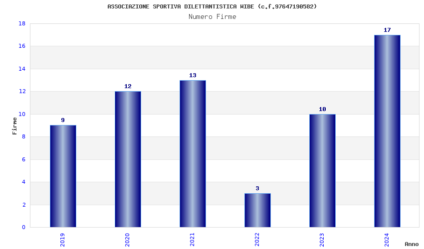| Anno | Firme | Importi | Media | Naz. | Reg. | Prov. | Comu. |