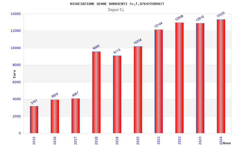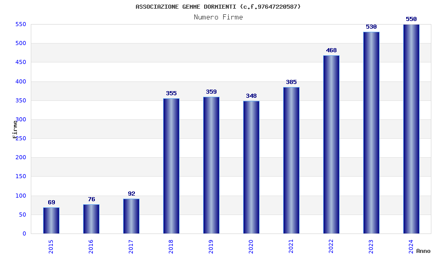 | Anno | Firme | Importi | Media | Naz. | Reg. | Prov. | Comu. |