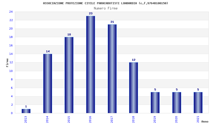 | Anno | Firme | Importi | Media | Naz. | Reg. | Prov. | Comu. |