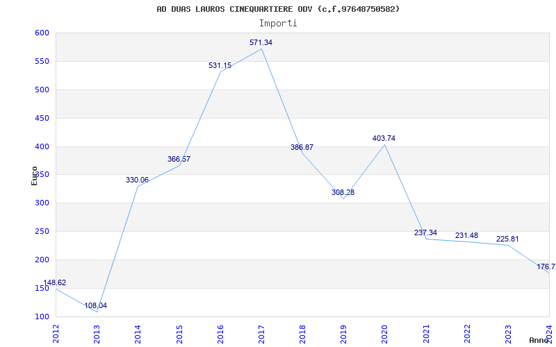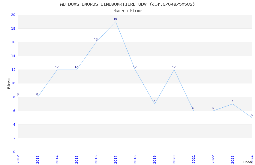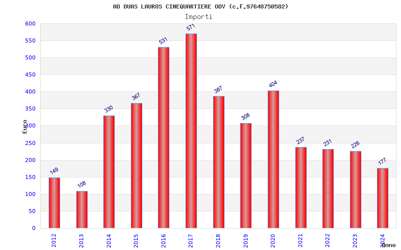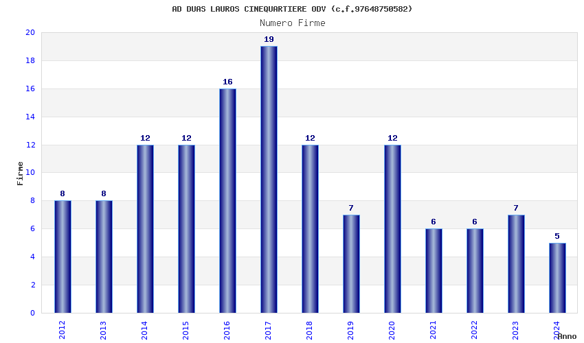 | Anno | Firme | Importi | Media | Naz. | Reg. | Prov. | Comu. |