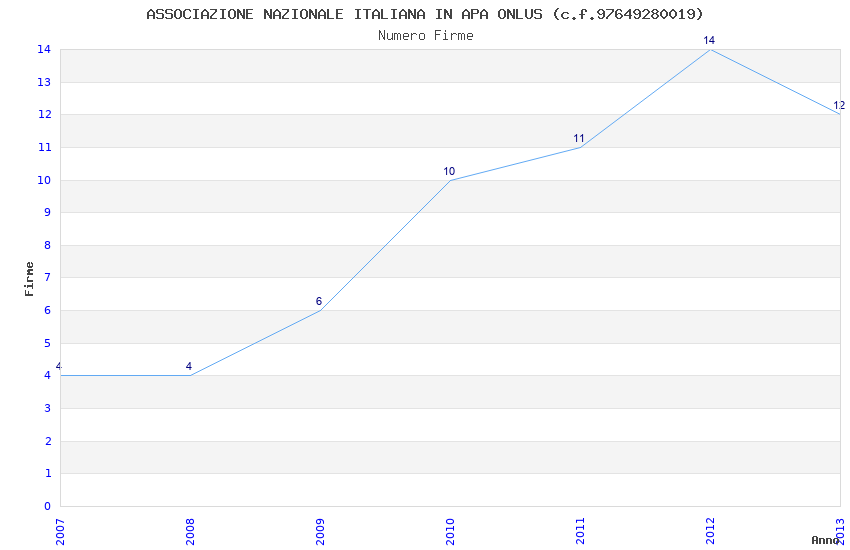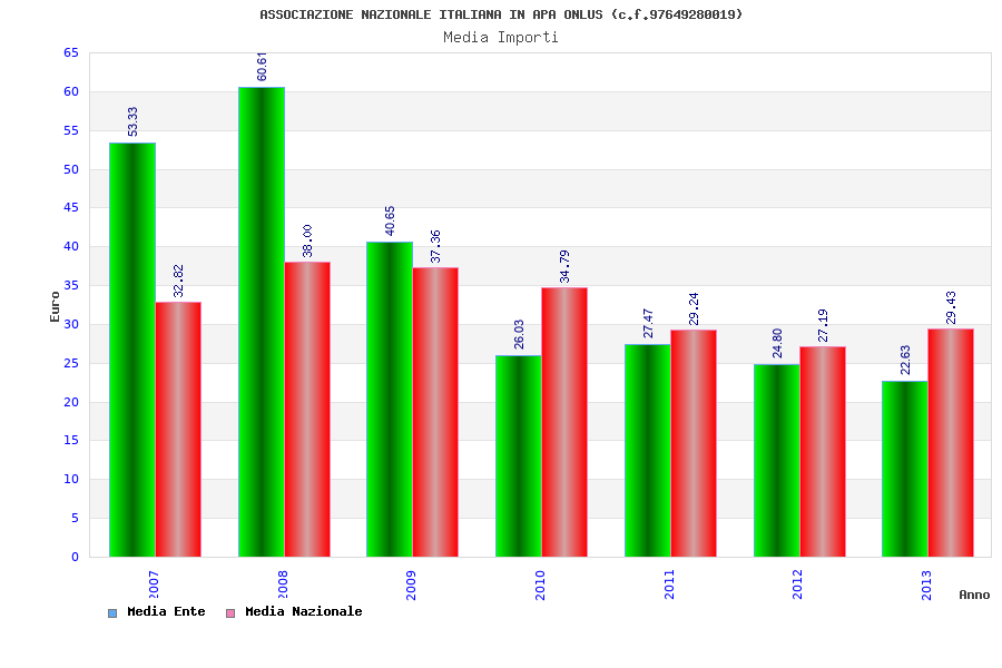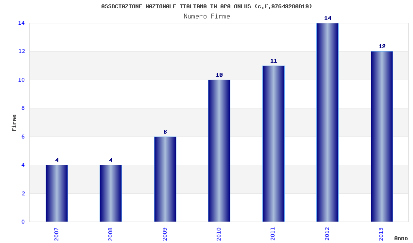 | Anno | Firme | Importi | Media | Naz. | Reg. | Prov. | Comu. |