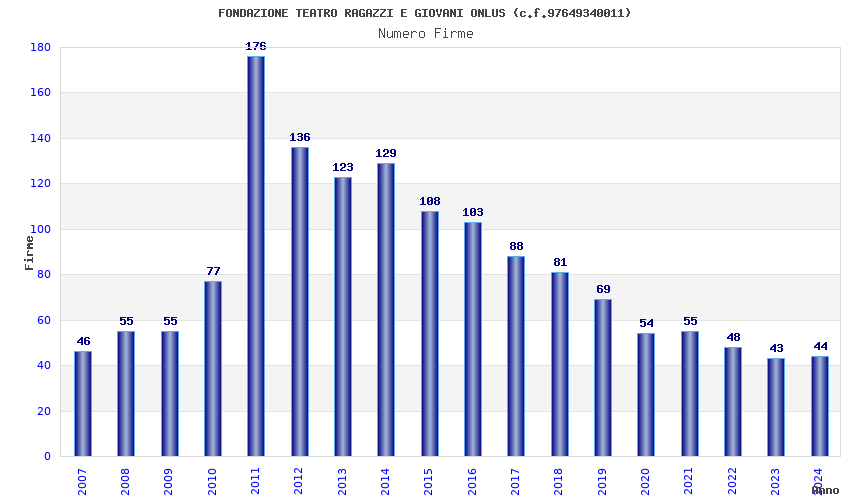 | Anno | Firme | Importi | Media | Naz. | Reg. | Prov. | Comu. |