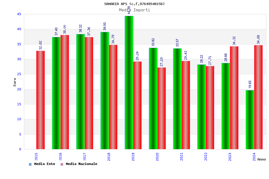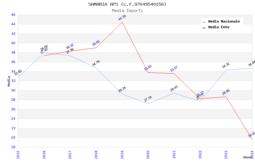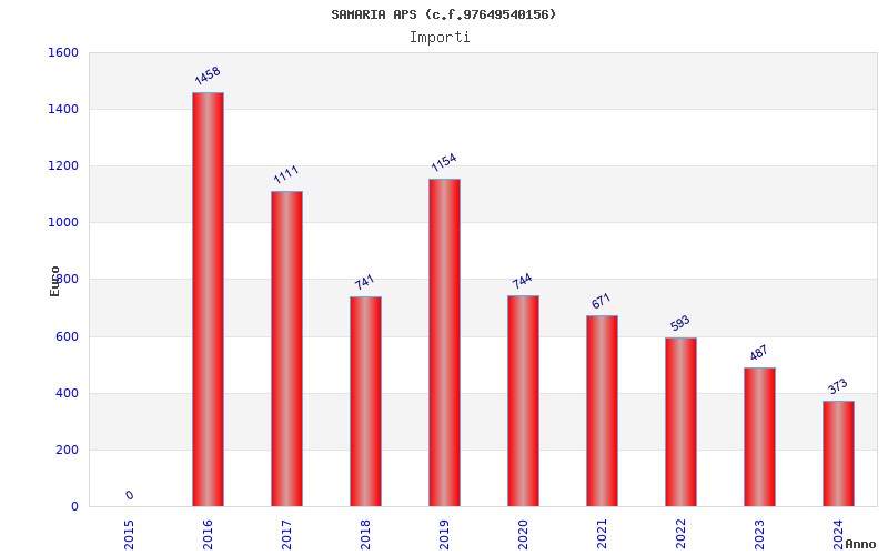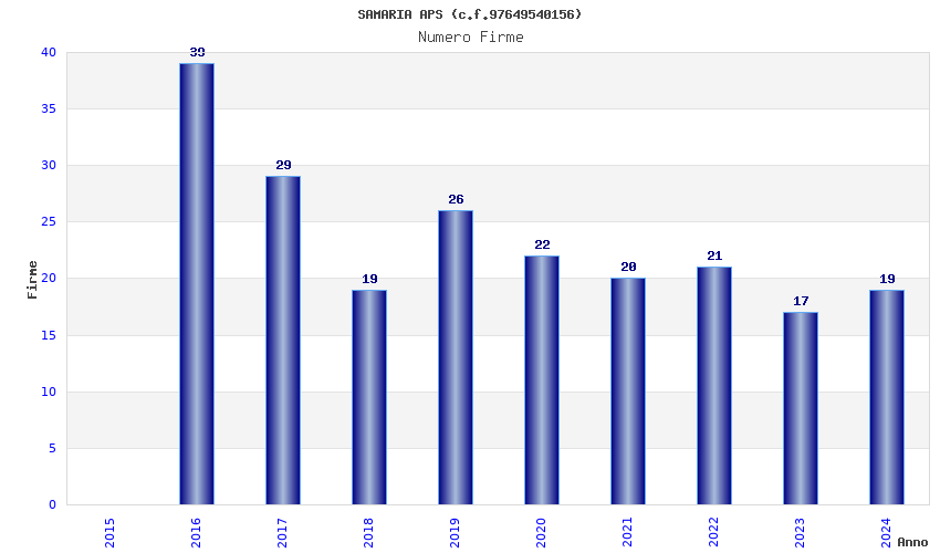 | Anno | Firme | Importi | Media | Naz. | Reg. | Prov. | Comu. |