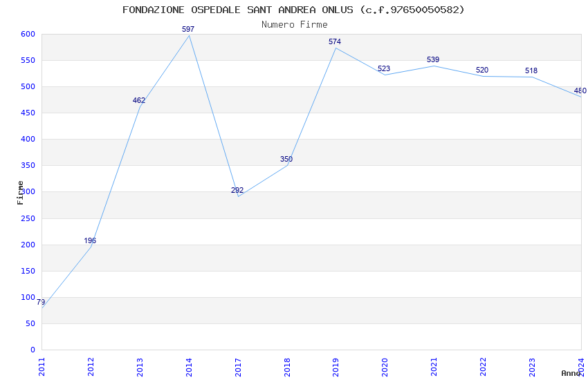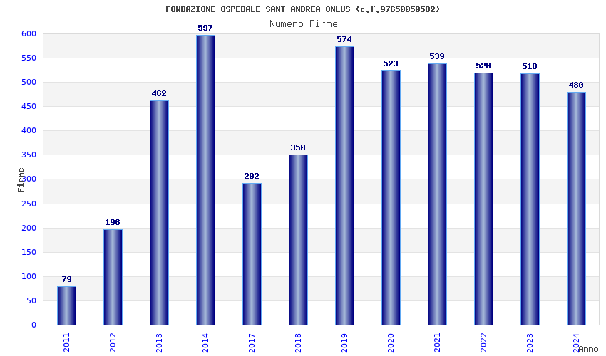 | Anno | Firme | Importi | Media | Naz. | Reg. | Prov. | Comu. |