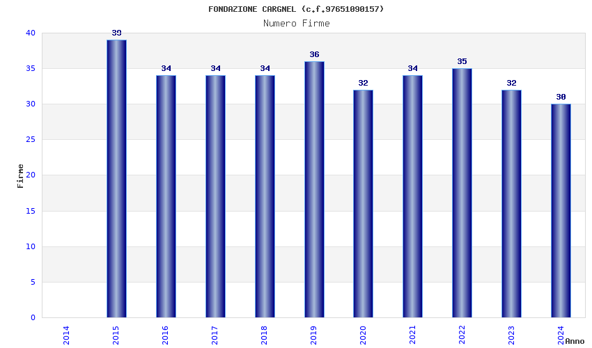 | Anno | Firme | Importi | Media | Naz. | Reg. | Prov. | Comu. |