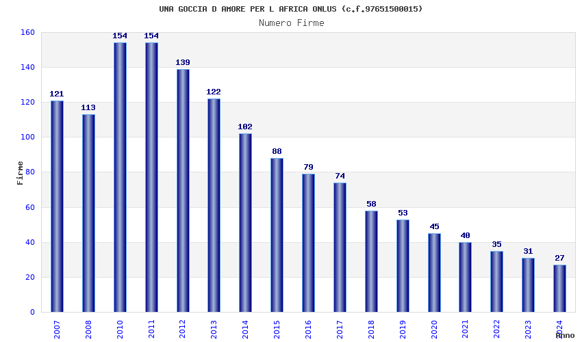 | Anno | Firme | Importi | Media | Naz. | Reg. | Prov. | Comu. |