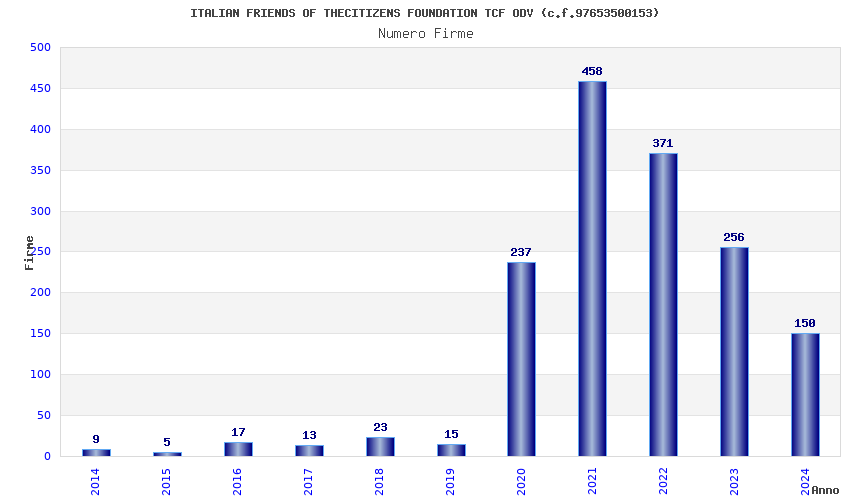| Anno | Firme | Importi | Media | Naz. | Reg. | Prov. | Comu. |