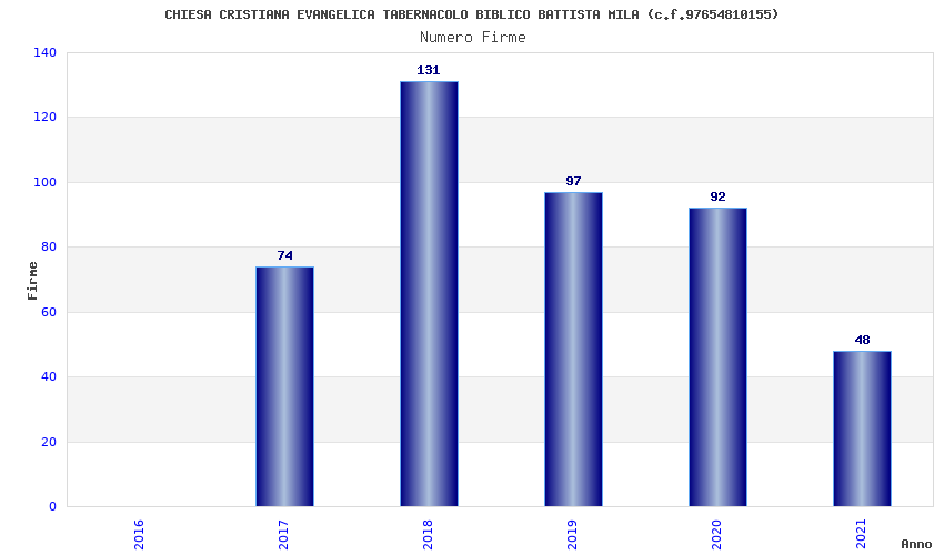 | Anno | Firme | Importi | Media | Naz. | Reg. | Prov. | Comu. |