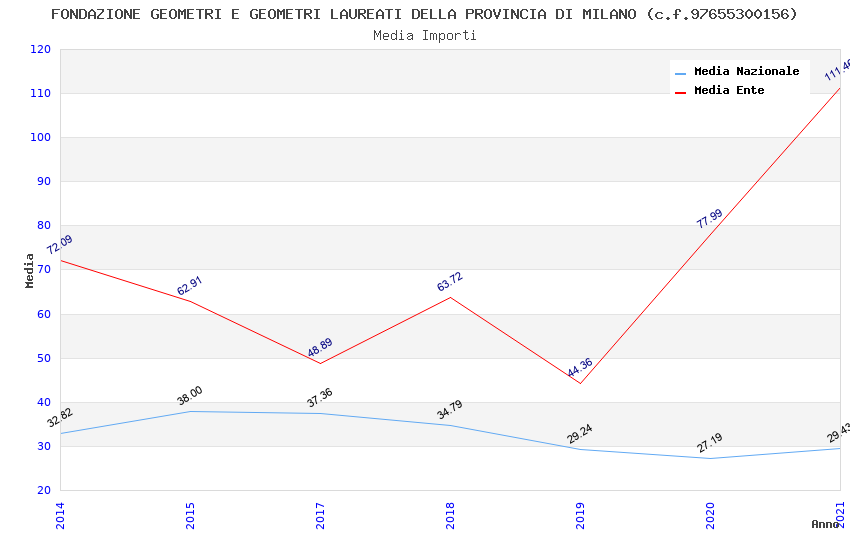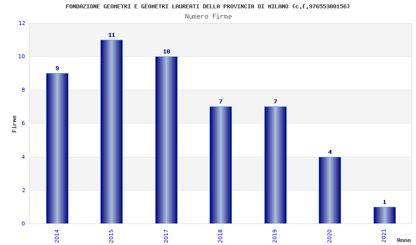 | Anno | Firme | Importi | Media | Naz. | Reg. | Prov. | Comu. |