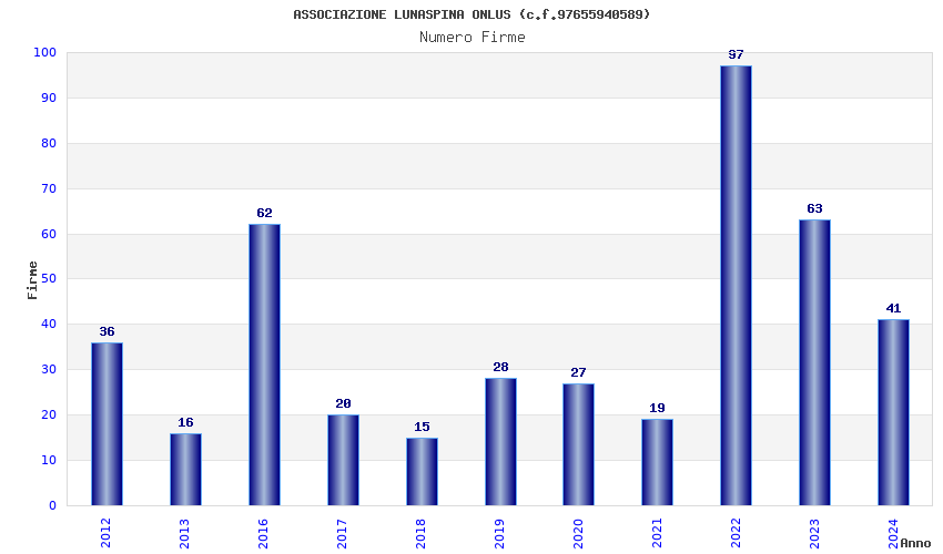 Anno Firme Importi Media Naz. Reg. Prov. Comu.