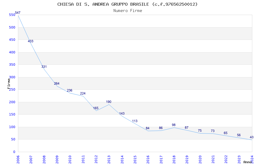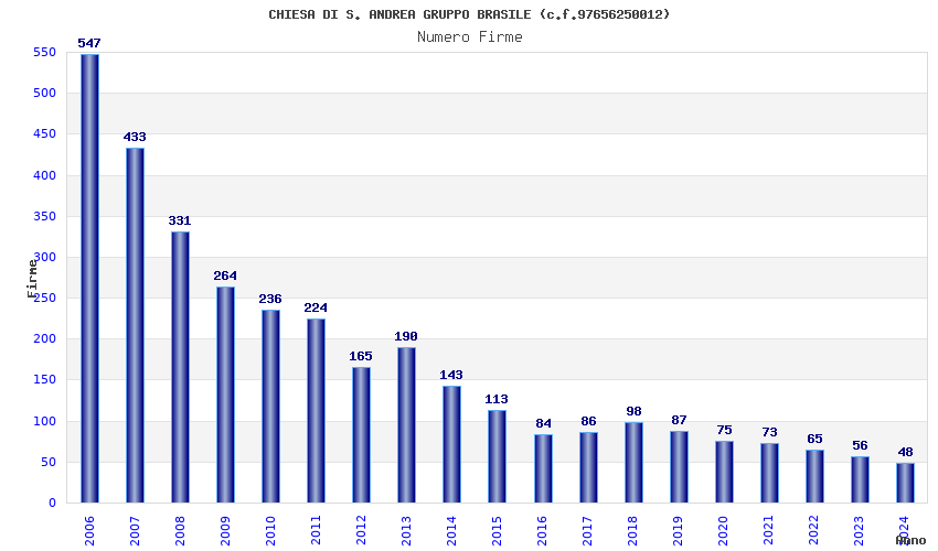 | Anno | Firme | Importi | Media | Naz. | Reg. | Prov. | Comu. |