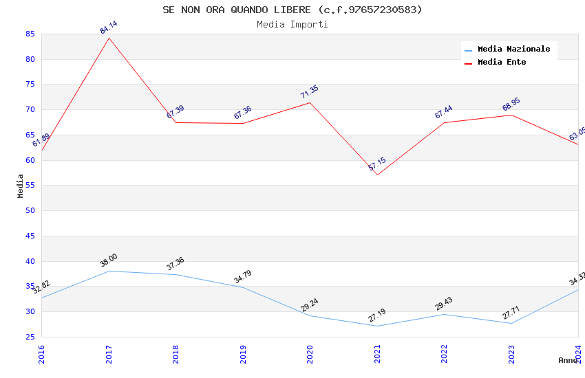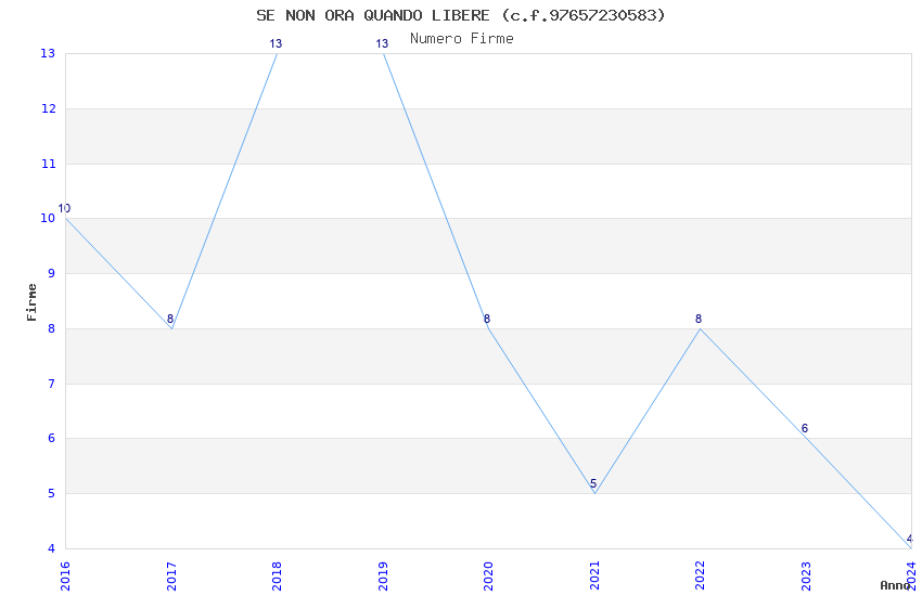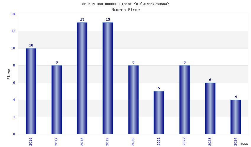 | Anno | Firme | Importi | Media | Naz. | Reg. | Prov. | Comu. |