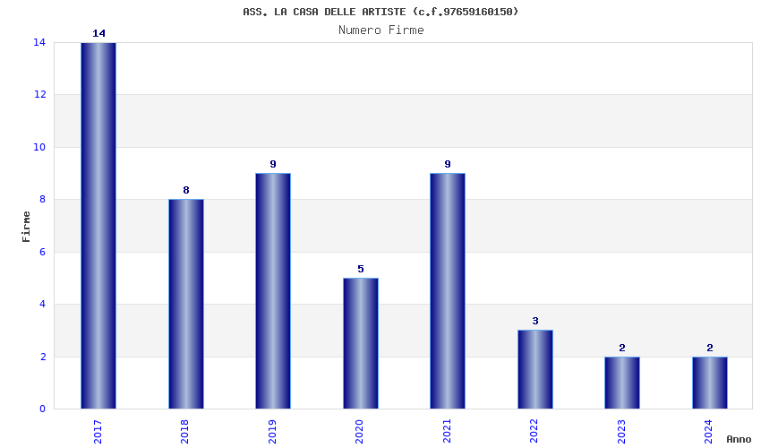 | Anno | Firme | Importi | Media | Naz. | Reg. | Prov. | Comu. |