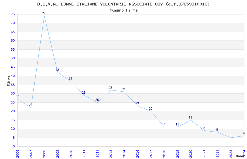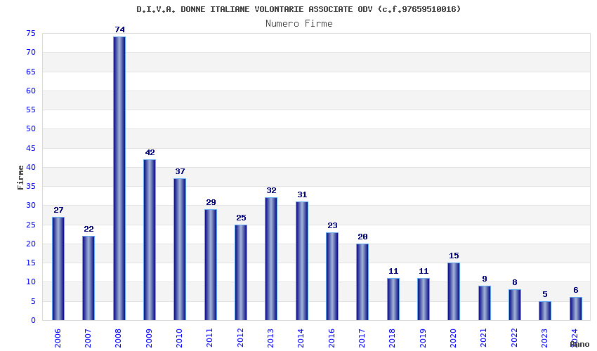 | Anno | Firme | Importi | Media | Naz. | Reg. | Prov. | Comu. |