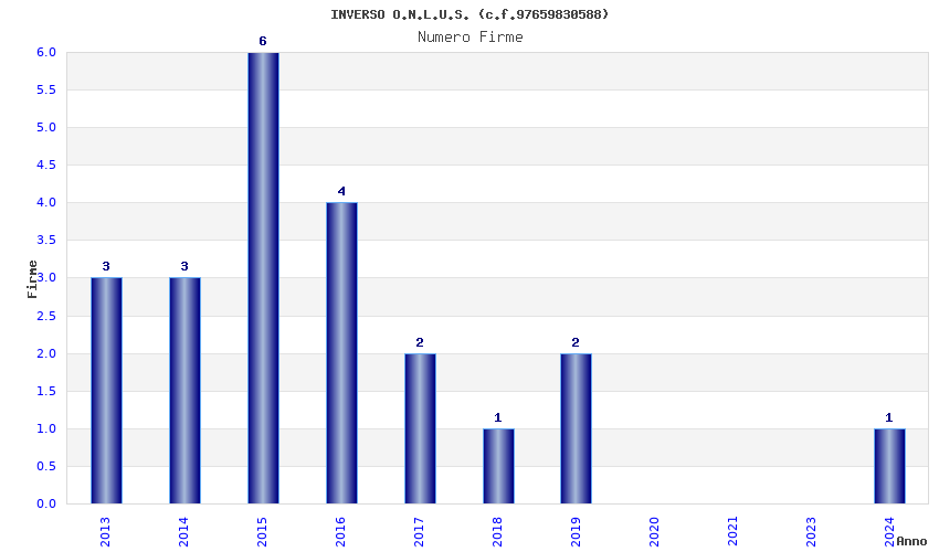 | Anno | Firme | Importi | Media | Naz. | Reg. | Prov. | Comu. |