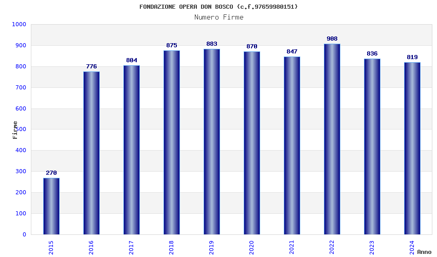 | Anno | Firme | Importi | Media | Naz. | Reg. | Prov. | Comu. |