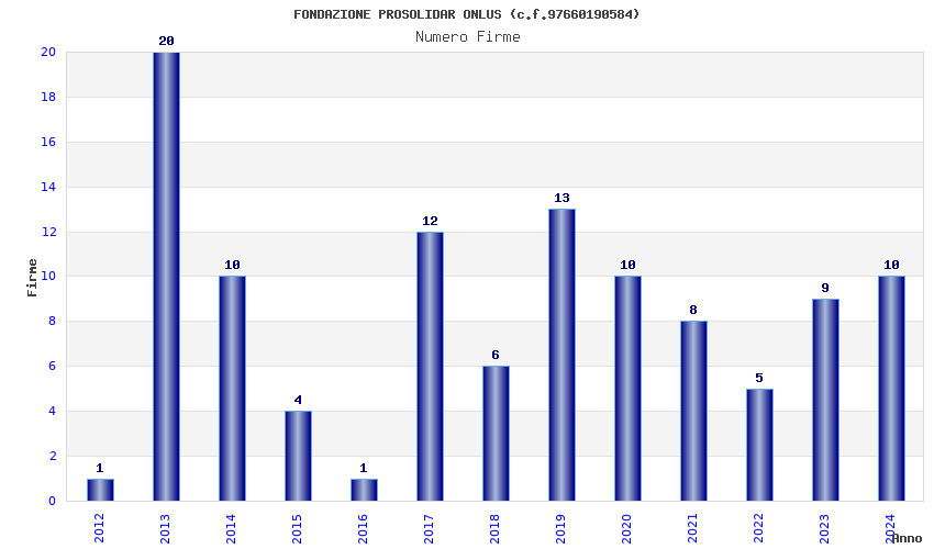 | Anno | Firme | Importi | Media | Naz. | Reg. | Prov. | Comu. |