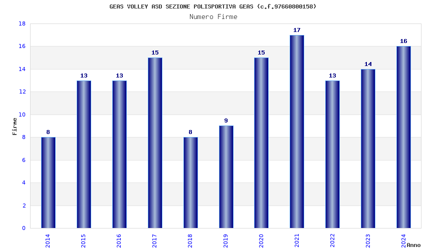 | 2021 | 17 | 651,30 | 38,31 | 43.669 | 8.791 | 2.662 | 41 |