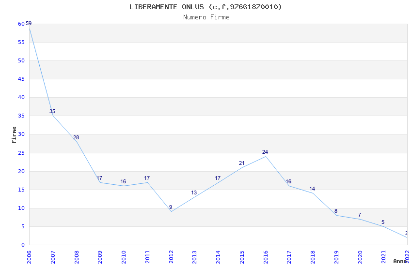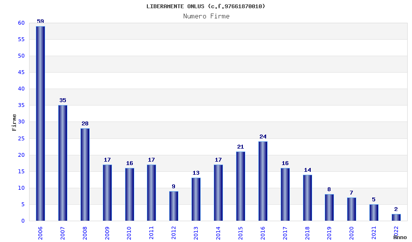 | Anno | Firme | Importi | Media | Naz. | Reg. | Prov. | Comu. |