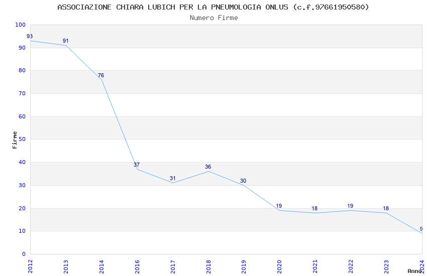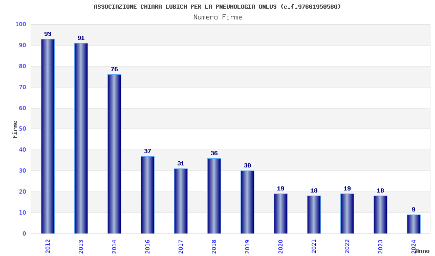 | Anno | Firme | Importi | Media | Naz. | Reg. | Prov. | Comu. |