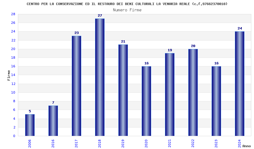 | Anno | Firme | Importi | Media | Naz. | Reg. | Prov. | Comu. |