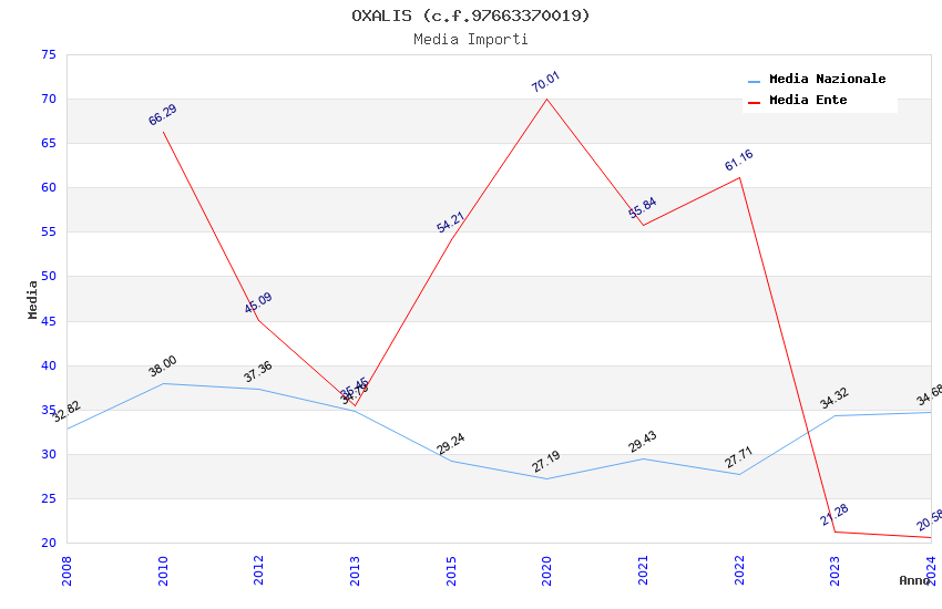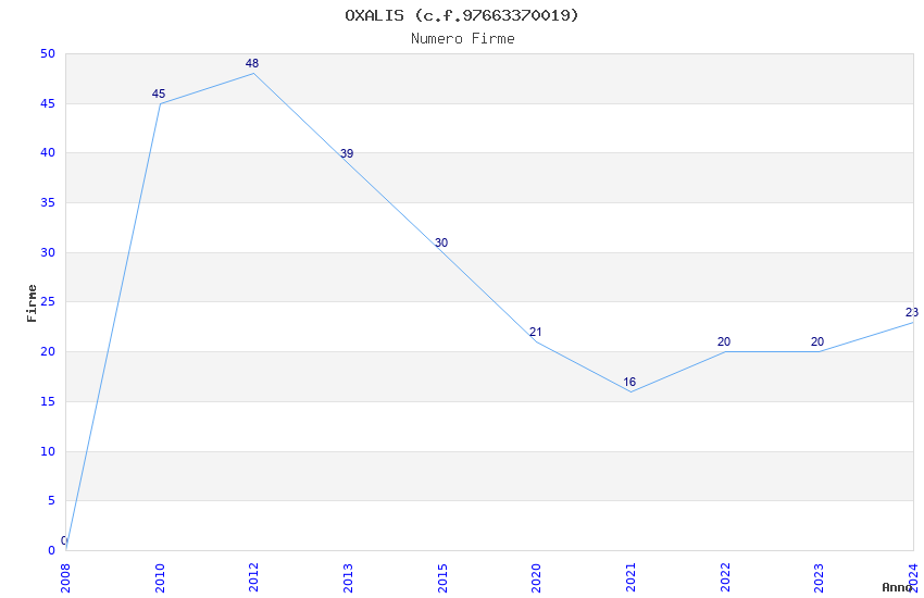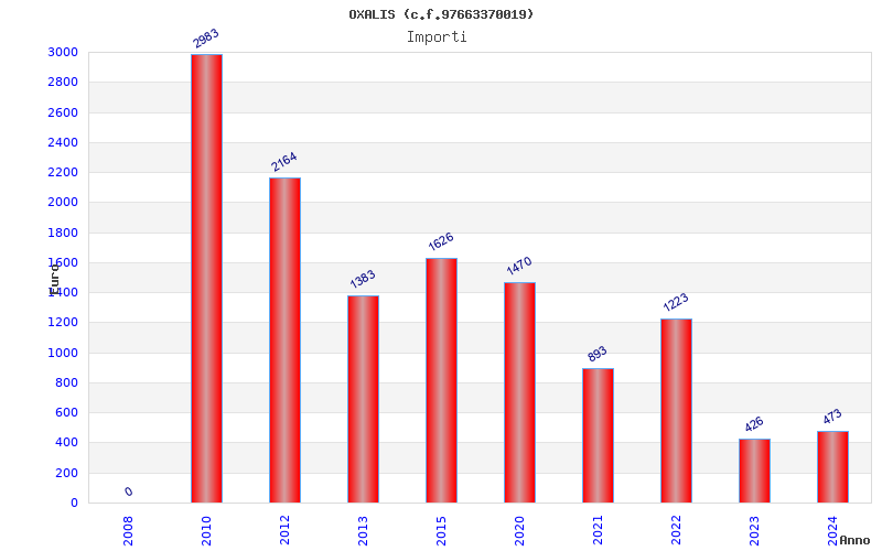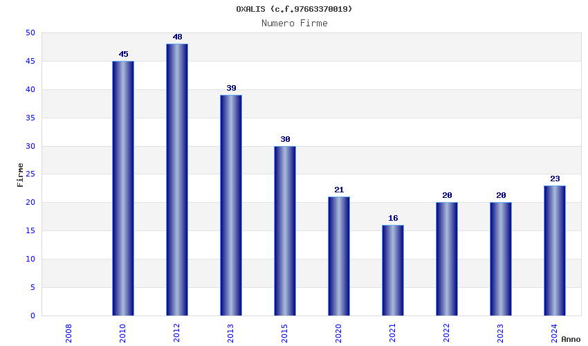 | Anno | Firme | Importi | Media | Naz. | Reg. | Prov. | Comu. |
