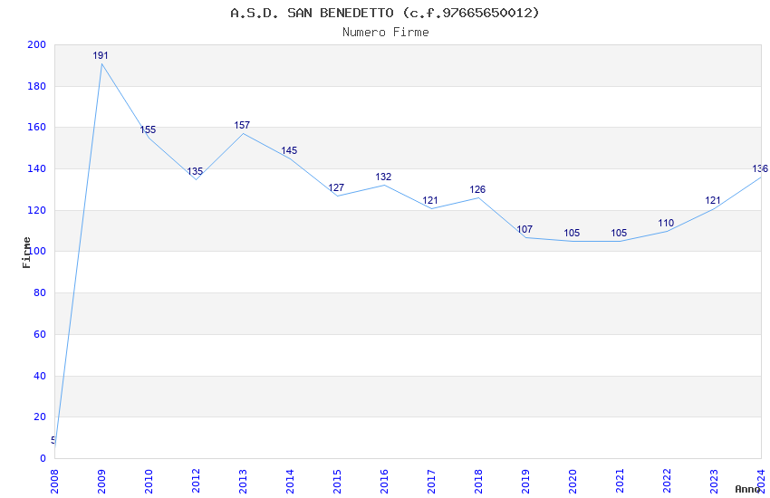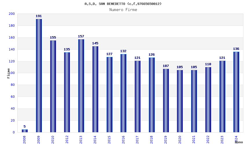 | Anno | Firme | Importi | Media | Naz. | Reg. | Prov. | Comu. |