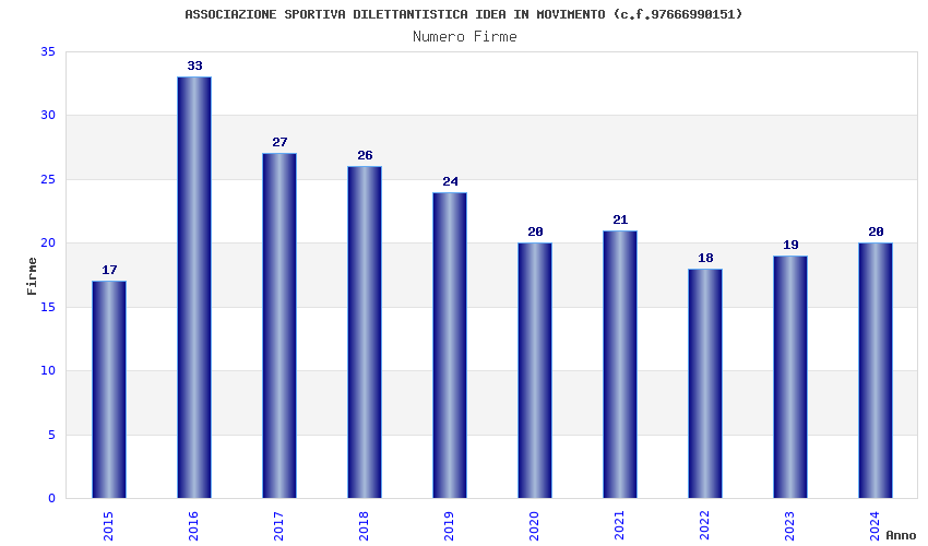 | Anno | Firme | Importi | Media | Naz. | Reg. | Prov. | Comu. |