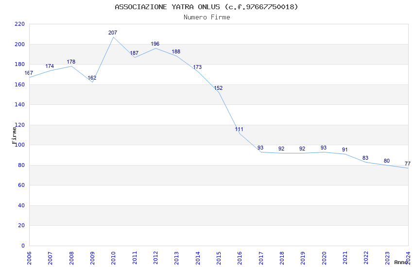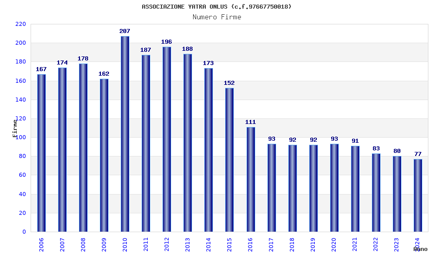 | Anno | Firme | Importi | Media | Naz. | Reg. | Prov. | Comu. |